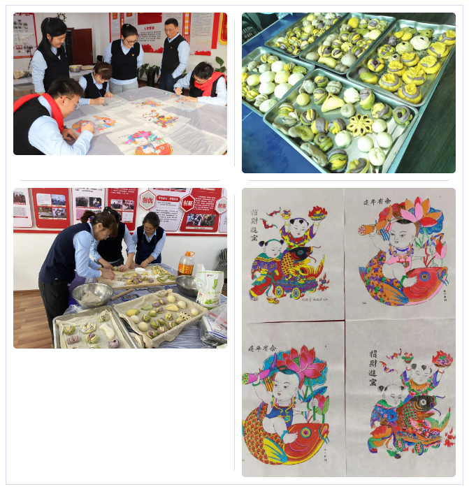 隨后,公司員工共同制作新年饅頭、畫年畫。有的和面、揉面,有的捏形狀、刻模子,有的上顏色,有的準備灶火,看似簡單的制作,包含了大家的共同交流、為了同一個目標的互助協(xié)作。“畫的年畫叫‘連年有余’,希望新一年繼續(xù)收獲滿滿。”“時間過得真快,又是新的一年,希望疫情早日結(jié)束,我們都能正常的工作與生活。”歡樂祥和的氣氛,預示著來年的大豐收,每個人都懷著對未來的美好希冀。