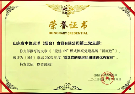 近日,《國企》雜志編輯部頒發2023年度“國企黨建理論研究”等相關優秀作品及“國企黨的基層組織建設”優秀案例榮譽證書。中魯食品公司第二黨支部《...
