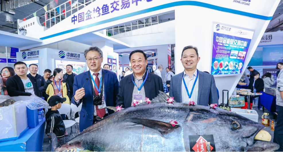 2019年10月25日,第五屆濟(jì)南電子商務(wù)產(chǎn)業(yè)博覽會(huì)曁第二屆泉城電商大會(huì)隆重開幕,中魯遠(yuǎn)洋公司展廳擺放的一尾重達(dá)100公斤的藍(lán)鰭金槍魚吸引了眾多來賓的目光。