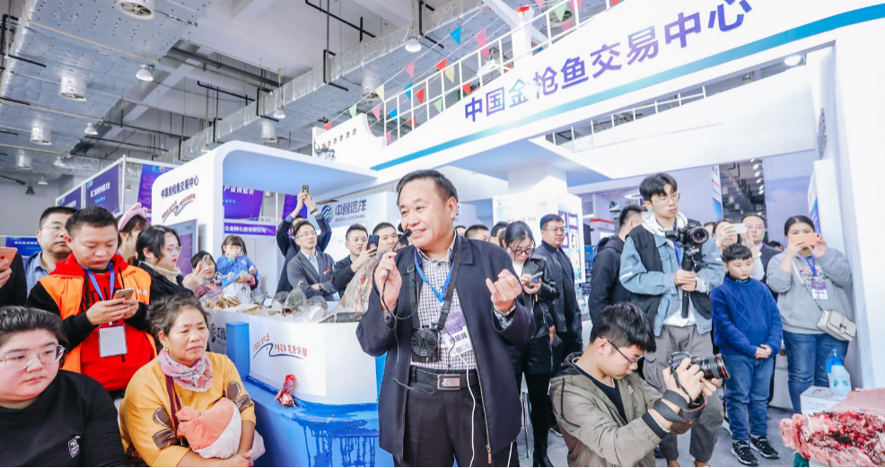 26日上午11點(diǎn),中魯遠(yuǎn)洋公司展廳舉行了藍(lán)鰭金槍魚解體秀活動(dòng)。活動(dòng)在線上線下同時(shí)發(fā)布,知名網(wǎng)絡(luò)主播在線直播并不時(shí)穿插在線購買、即時(shí)交易等環(huán)節(jié),金槍魚切片、麻油金槍魚、五香金槍魚等三款產(chǎn)品剛一上線就被粉絲全部購買。活動(dòng)中,中魯遠(yuǎn)洋公司董事長盧連興親自向現(xiàn)場觀眾和直播平臺粉絲介紹金槍魚的營養(yǎng)價(jià)值和金槍魚知識,吸引眾多來賓駐足聆聽,現(xiàn)場氣氛十分活躍,整個(gè)博覽會(huì)氛圍達(dá)到高潮,在線觀看人數(shù)超過500萬人次。