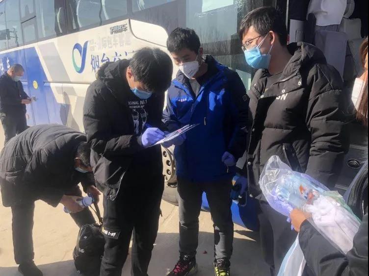 發車之前,中魯食品公司安排了六位車長隨車前行,跟車服務,并每車配備了體溫計、口罩、手套等防護用品及充足的食品;煙臺交運集團駕駛員在發車前,用消毒液對車門、扶手、座椅靠背、窗戶進行了消殺,對車內地板和壓槽用消毒液進行清洗。