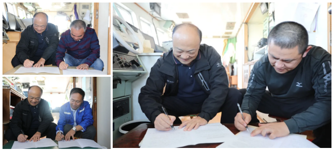 在歷時2個月的維修調整后,船舶捕魚設備、機電配件、生活物資、防疫物資提前一天就已上船。所有船員均接受信息核對、體溫檢測等出海前的準備。為壓實漁船安全生產主體責任,中魯海延公司負責人與每艘漁船船長簽訂了安全生產安全管理責任書。當日上午,各崗位人員就進行離港準備,輪機長第一時間檢查設備運行情況,使各項設備都在正常運轉狀態。船長檢查通導設備運行狀況,確保精準運行。船員在甲板做好離港前的所有準備工作。