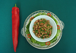 材料: 金槍魚生魚片400克、藥300克、西紅柿1個(大)、黃瓜2根、蘿卜絲80克、芥末2小匙、胡蔥4根(切段)、色拉油、檸檬汁、多味辣椒。 輔料A: 蘿卜絲
